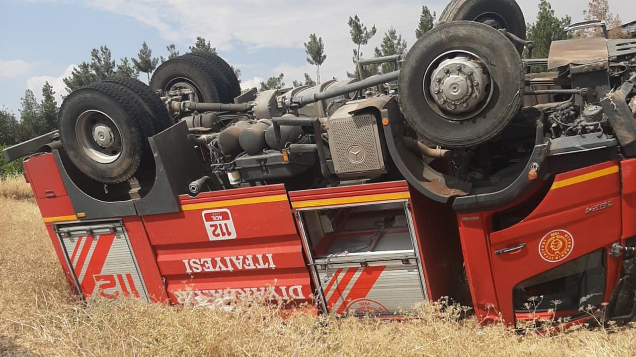 Anız yangını için müdahaleye giden M.Ş. yönetimindeki 21 HA 031 plakalı itfaiye aracı, seyir halindeyken sürücünün kontrolünden çıkarak yol kenarına devrildi.