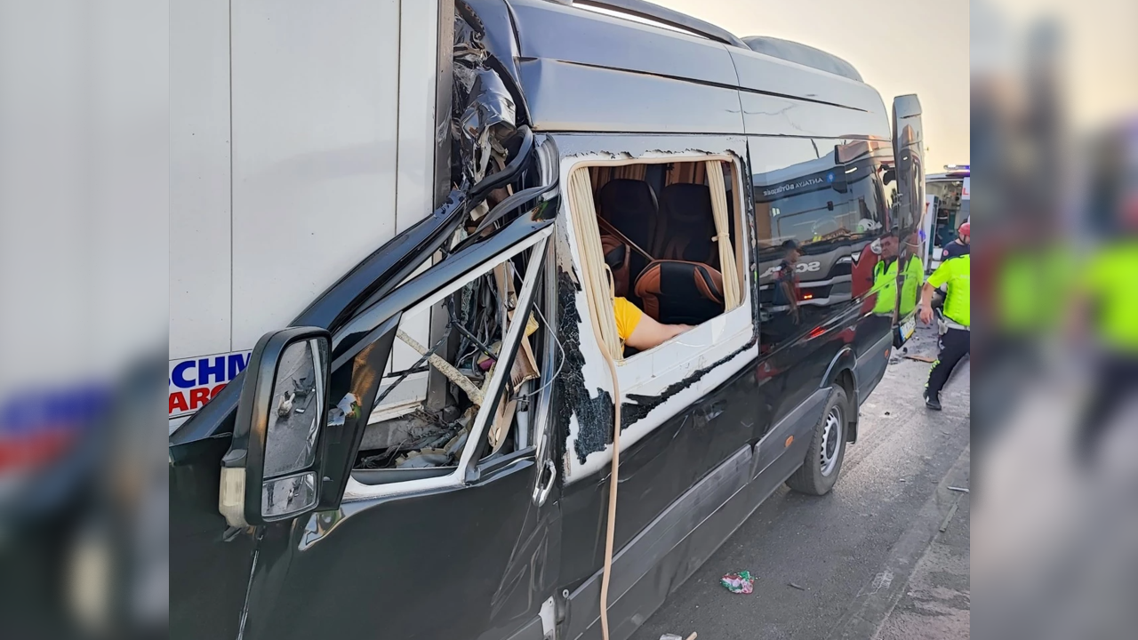 Alanya ilçesinde dün akşam saatlerinde D-400 kara yolunda trafik kazası yaşandı. Turistleri taşıyan M.O. yönetimindeki minibüs, Ü.P’nin kullandığı tıra arkadan çarptı. Çarpışmanın şiddetiyle minibüs hurdaya dönerken, tır ise yoldan çıkarak devrildi.