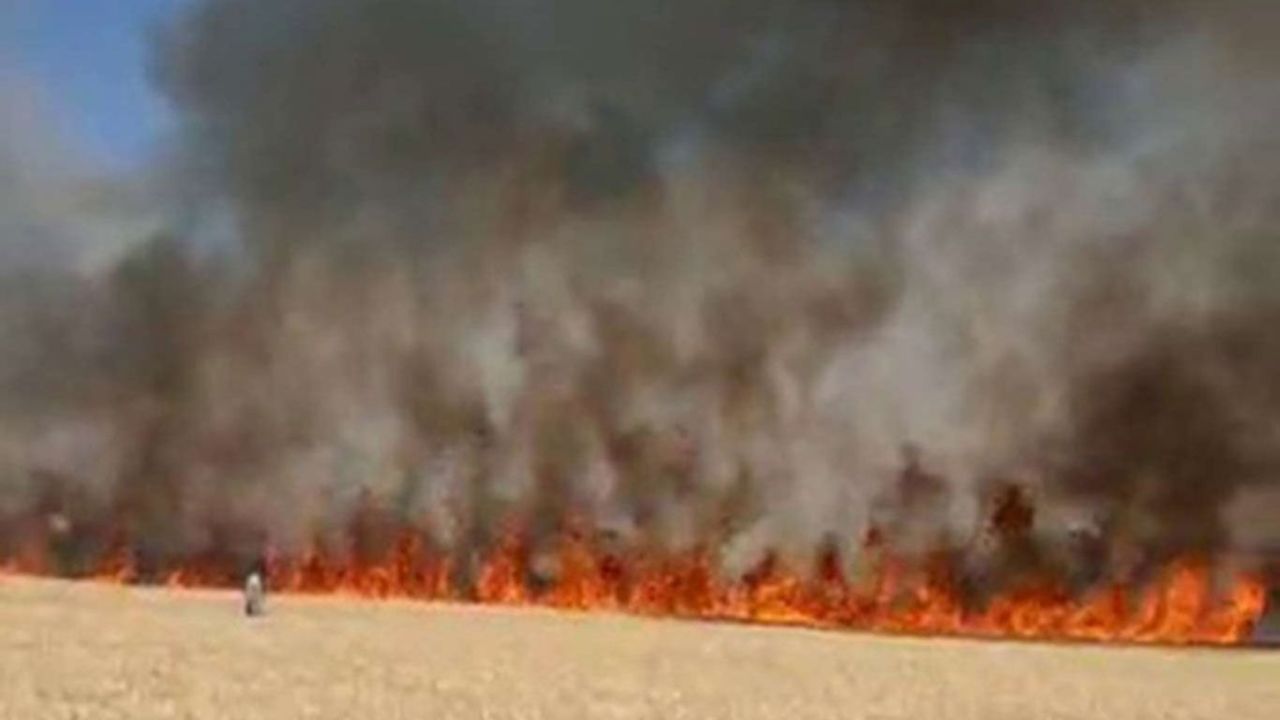 Yangının ardından yapılan ilk belirlemelere göre yaklaşık 100 dönüm buğday tarlası yanarak kül oldu. (İLKHA)
