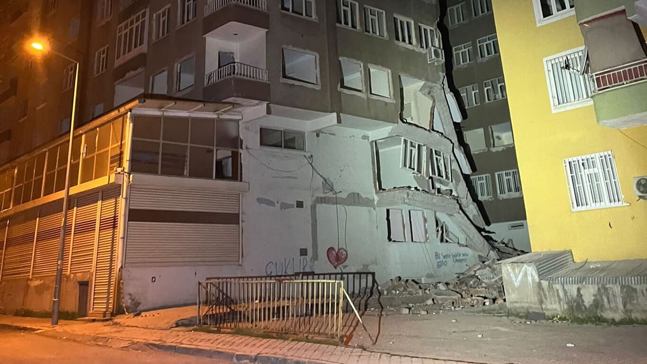 Diyarbakır Valisi Ali İhsan Su, bir bölümü çöken binanın önüne gelerek incelemelerde bulundu. (İLKHA)