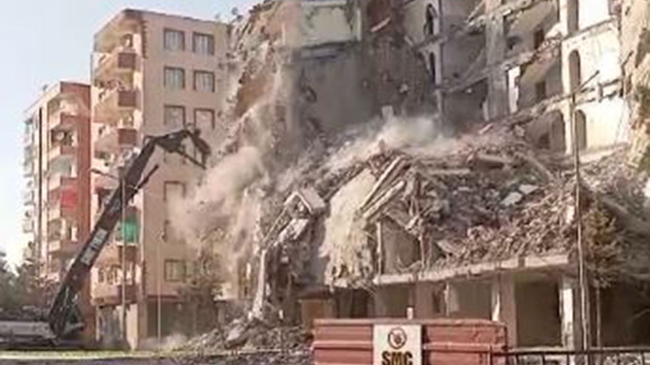 Binanın kontrollü yıkımı esnasında çökme meydana geldi.
