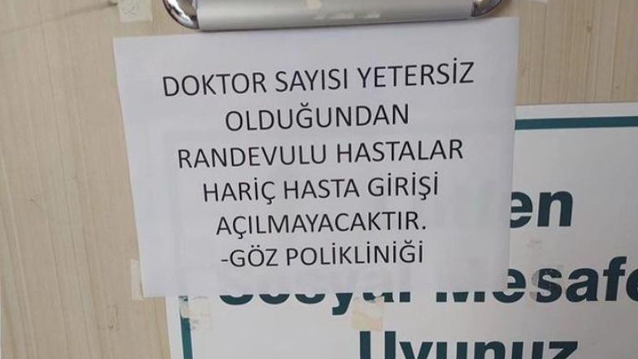 Bingöl Devlet Hastanesinde, ‘Doktor sayısı yetersizliğinden dolayı randevulu hastalar haricinde hasta girişi açılmayacaktır.’ yazısı asıldı.