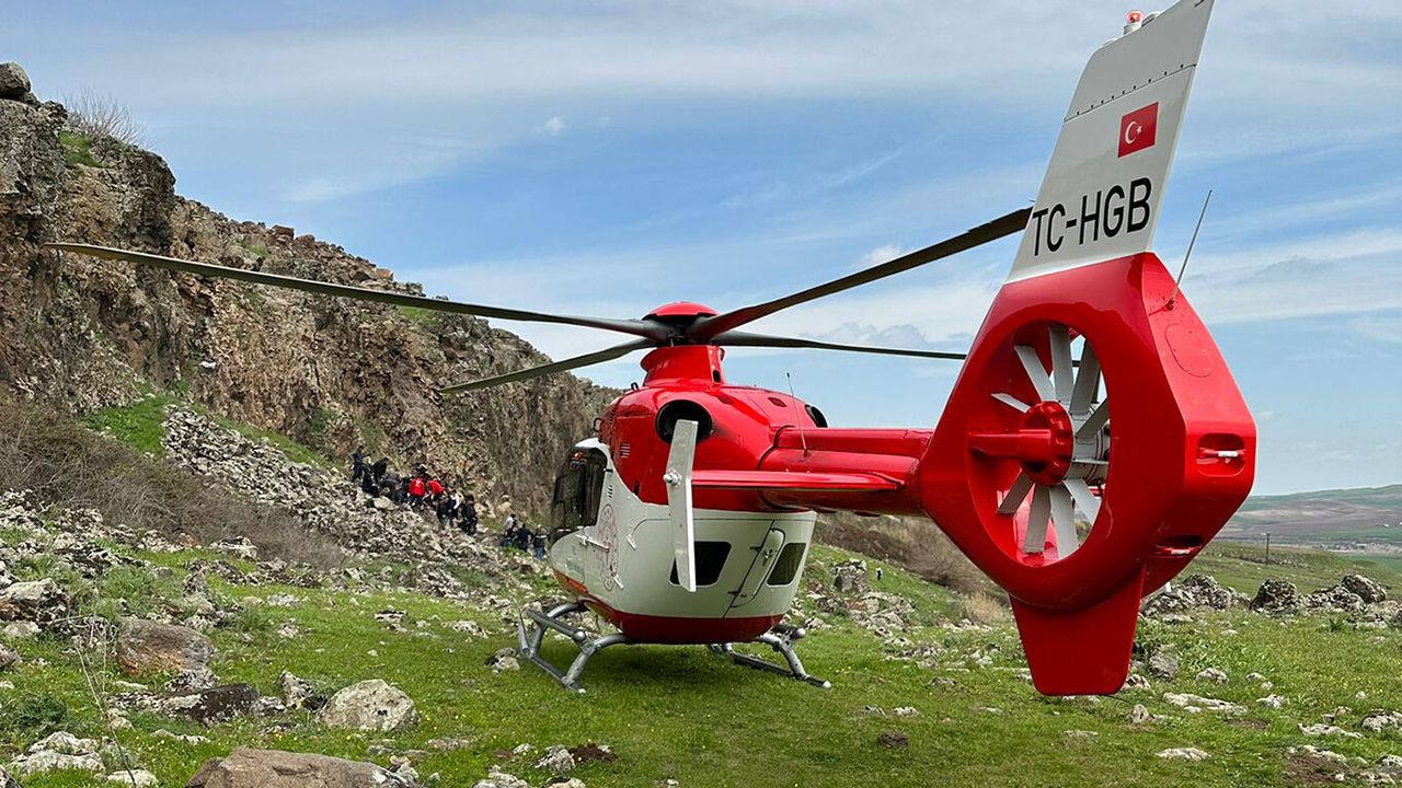 Durumu 112 Acil Çağrı Merkezine bildiren yaralı Ataş için arazinin engebeli olması nedeniyle bölgeye helikopter ambulansı ekibi sevk edildi.