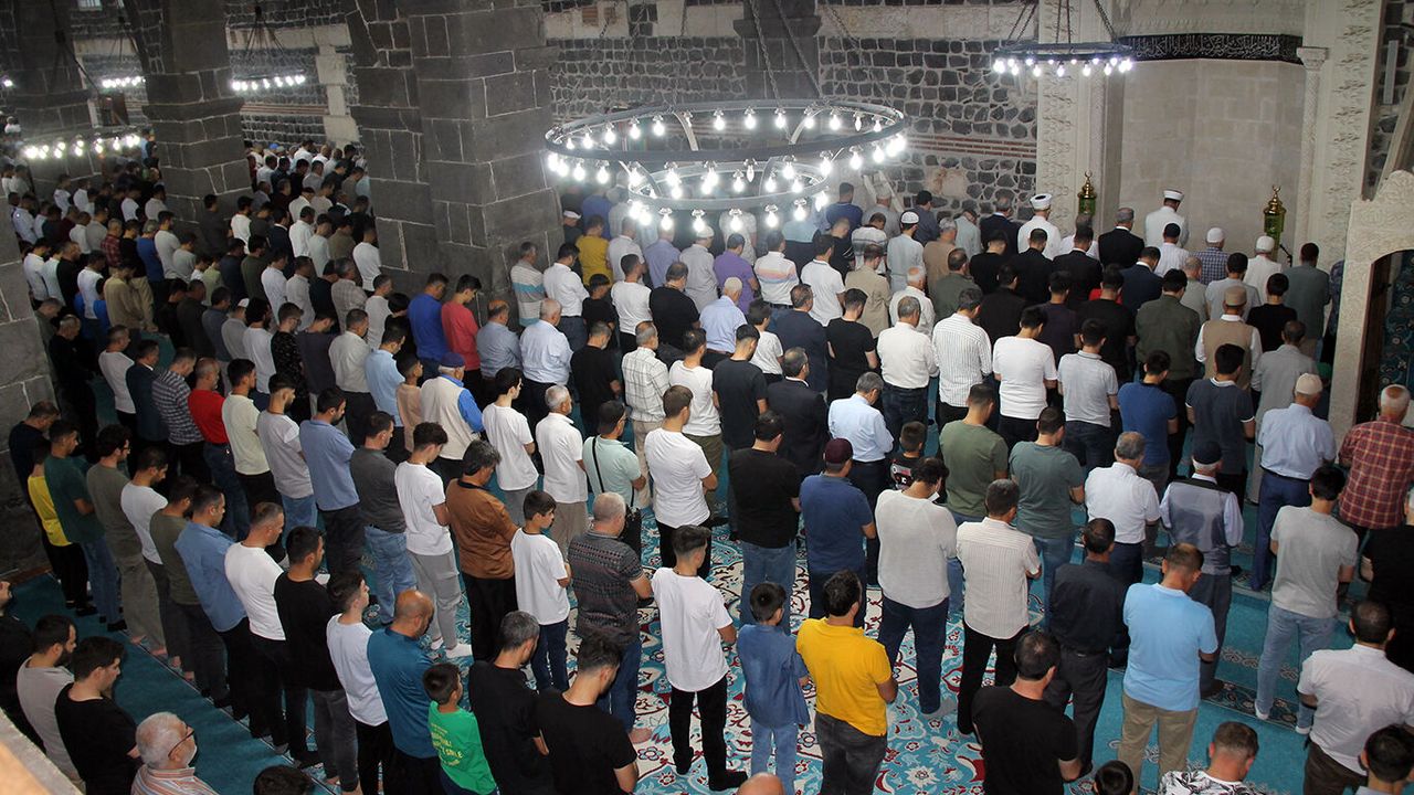 Sabahın erken saatlerinde camilere akın eden Diyarbakırlılar, özellikle adeta Diyarbakır'ın sembolü olan tarihi Ulu Camiinde saf saf namaza durdu.