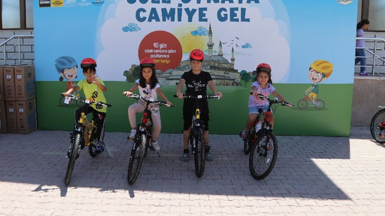 Konya Büyükşehir Belediye Başkanı Uğur İbrahim Altay, Güle Oynaya Camiye Gel Projesi kapsamında bisiklet almaya hak kazanan çocuklara bisikletlerini hediye etti.KONYA (İGFA) - Konya Büyükşehir Belediye Başkanı Uğur İbrahim Altay, “Güle Oynaya Camiye Gel Projesi” kapsamında Karatay El Aksa Camii’nde düzenlenen bisiklet dağıtım programına katılarak bisiklet almaya hak kazanan çocuklara bisikletlerini hediye etti.