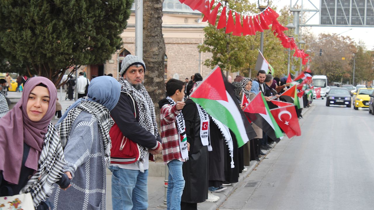Sivil Toplum Kuruluşları öncülüğünde Mevlana Meydanında bir araya gelen Müslümanlar, kilometrelerce sıra oluşturup yürüyüş düzenledi.