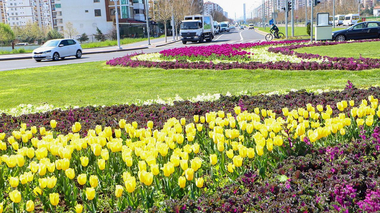 Nisan ayı itibariyle kırmızı, mor, kırmızı-beyaz ve sarı renklerinde çiçek açmaya başlayan lale soğanları kentin orta refüj ve kavşaklarına canlılık kattı.