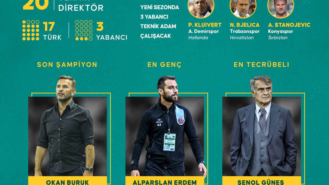 Bu sezon ligde mücadele edecek 20 takımdan sadece 4’ü yeni teknik direktörlerle başarı kovalayacak. Bu takımlar Fenerbahçe, Adana Demirspor, Demir Grup Sivasspor ve Çaykur Rizespor.