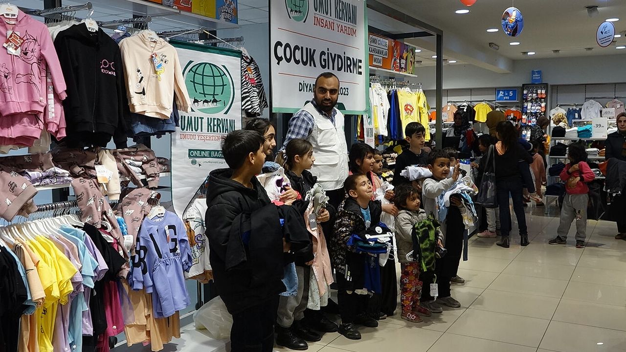 Umut Kervanı Diyarbakır yetkilileri tarafından organize edilen programda yüzlerce çocuk gönüllerince kıyafet ve ayakkabı aldı.