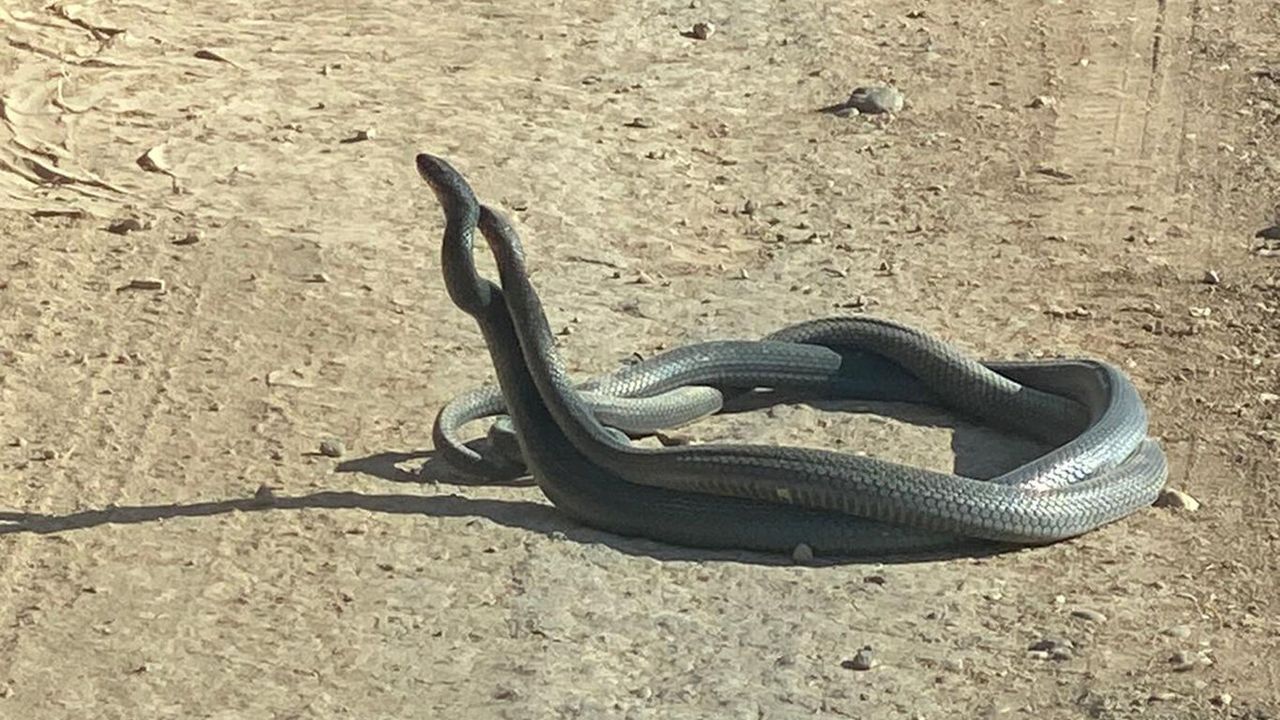 Diyarbakır'ın Bismil ilçesinde birbirlerine sarılmış 2 metre uzunluğundaki yılanların ilginç 'çiftleşme dansı', cep telefonu kamerasıyla kaydedildi.