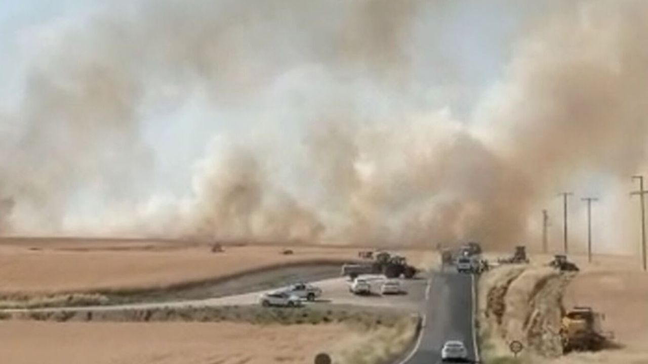 Saatlerce yapılan yoğun uğraşın neticesinde kontrol altına alındığı belirtilen alanda yüzlerce dönümlük tarla küle dönüştü.